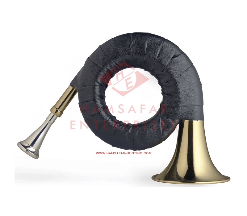 French hunting horn made of good quality brass & covered with cowhide Leather Colour available Green, Bron, Tan