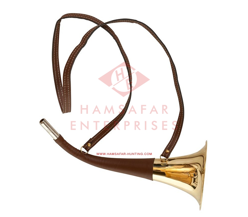 Hunting Horn made of good quality brass & covered with cowhide Leather (Brown) Size 50cm Also colour available Green & Tan